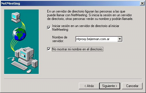 en un servidor de directorio al iniciar Netmeeting, tildando