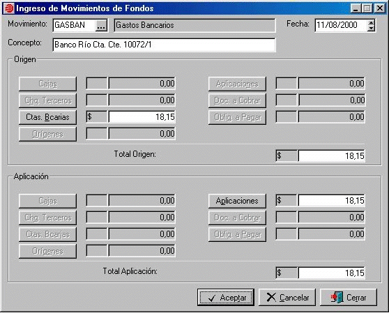 solicita el ingreso del movimiento de fondos correspondiente al
